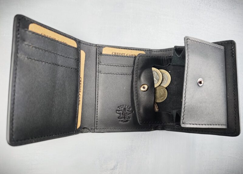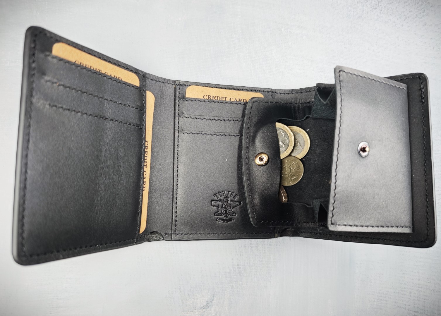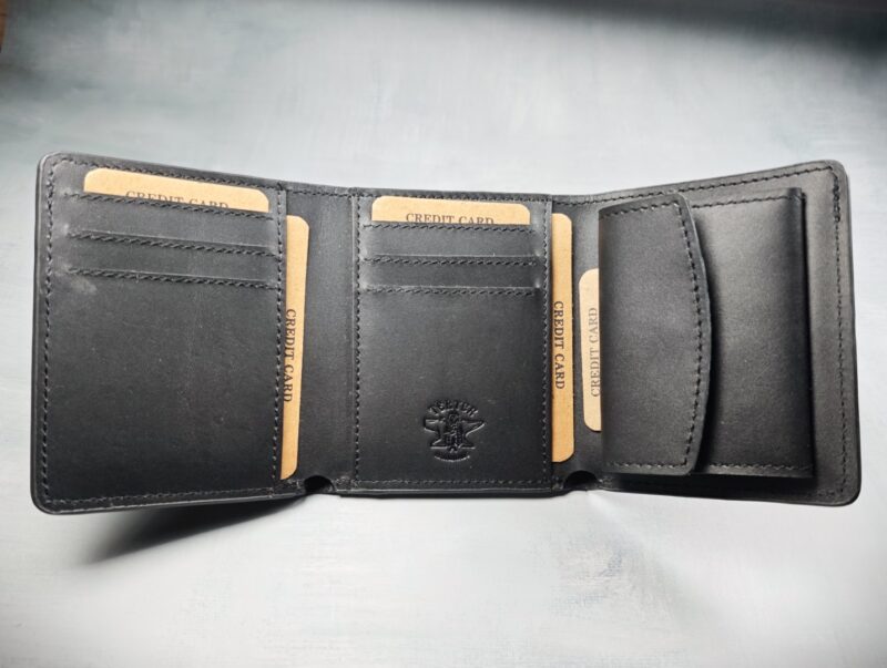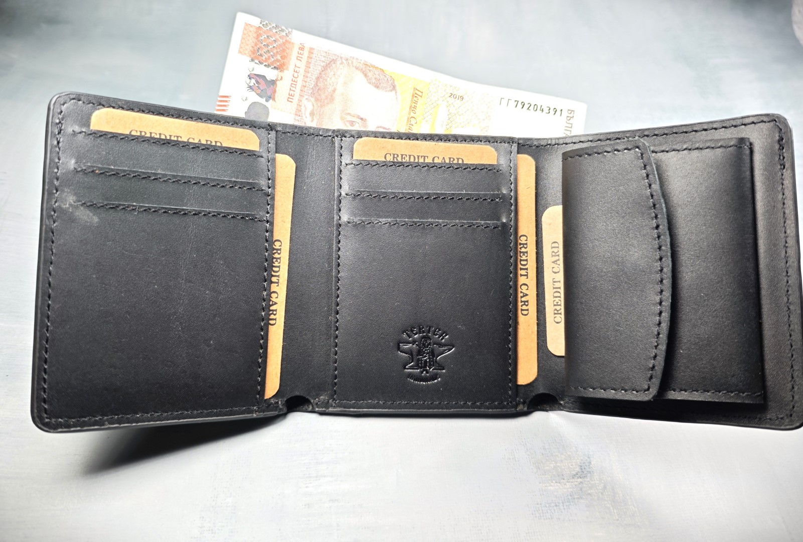 Мъжки портфейл:TR-M1021BL- компактен здрав и сигурен от висококачествена натурална естествена кожа с полирани ръбове и без добавен хастар!